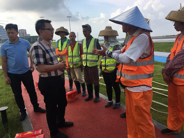 慰問(wèn)組一行先后來(lái)到金山公園、金灣路,分別慰問(wèn)園林綠化、市政道路管養(yǎng)、水利等一線作業(yè)員工?!?/span>你們辛苦了,感謝你們?yōu)槲拿鞒鞘懈冻龅男燎诤顾团Α?,鄒湘斌董事長(zhǎng)對(duì)他們?yōu)榫S護(hù)城市環(huán)境衛(wèi)生作出的努力表示感謝,進(jìn)一步了解了員工的工作情況及困難,并再次叮囑他們在烈日和高溫下作業(yè)要采取有效防暑降溫和安全生產(chǎn)保障措施,以健康的身體和愉悅的心情投入到工作中。
