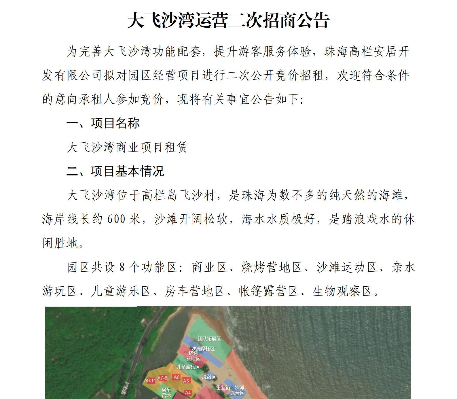 大飛沙灣運(yùn)營(yíng)二次招商公告
