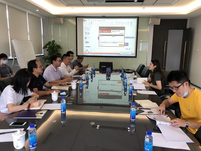 為學(xué)習(xí)產(chǎn)業(yè)招商與管理方面先進(jìn)經(jīng)驗(yàn),了解產(chǎn)業(yè)園區(qū)運(yùn)作模式,交流項(xiàng)目運(yùn)營經(jīng)驗(yàn),2020年6月24日上午,聯(lián)港資產(chǎn)公司總經(jīng)理?xiàng)顒P華、副總經(jīng)理葉劍華、總經(jīng)理助理應(yīng)家端一行共10人到清華科技園參觀學(xué)習(xí)。珠海清創(chuàng)科技服務(wù)有限公司總經(jīng)理馮飛燕、副總經(jīng)理?xiàng)钜?、招商副?jīng)理邱木亮陪同講解展廳并組織座談。