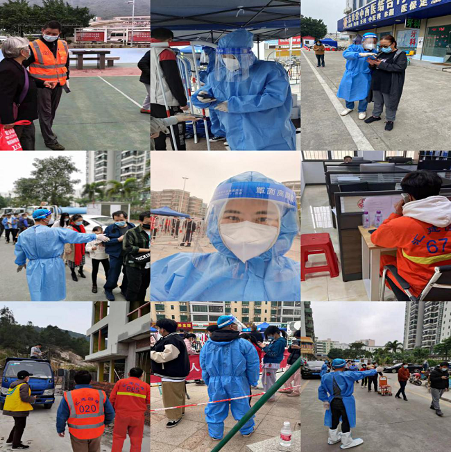 1月16-18日,全市“三天三檢”全面啟動。疫情就是命令,防控就是責任,聯(lián)港公司在區(qū)委區(qū)政府統(tǒng)籌指揮下,上下聯(lián)動、迅速響應、主動應戰(zhàn),織就了一張逾六百人的志愿服務隊伍網(wǎng),深入到航空新城和三灶、紅旗、南水、平沙各鎮(zhèn)、各社區(qū),與社區(qū)干部、核酸檢測隊伍同站一班崗、同守一條線,扛起國企黨員干部職工沉甸甸的責任和擔當,共筑防疫屏障。