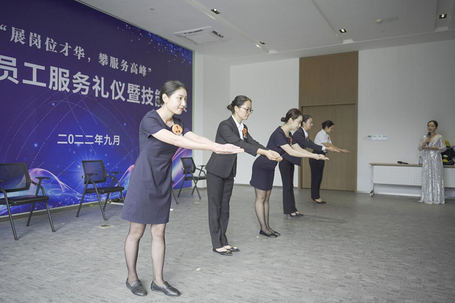 客服技能展示以賓客引導、員工坐姿、站姿、倒水等內(nèi)容展開角逐,展現(xiàn)出了服務優(yōu)秀的客服應有的才能。