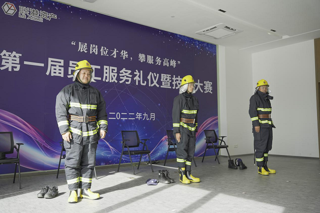 比賽現(xiàn)場消防服的快速穿戴展示服務安保人員的專業(yè)高效、快速響應的應變能力。平日里,他們24小時不間斷巡邏,守護業(yè)主安全,項目安全的背后離不開他們?nèi)諒鸵蝗盏挠眯母拧?/span>