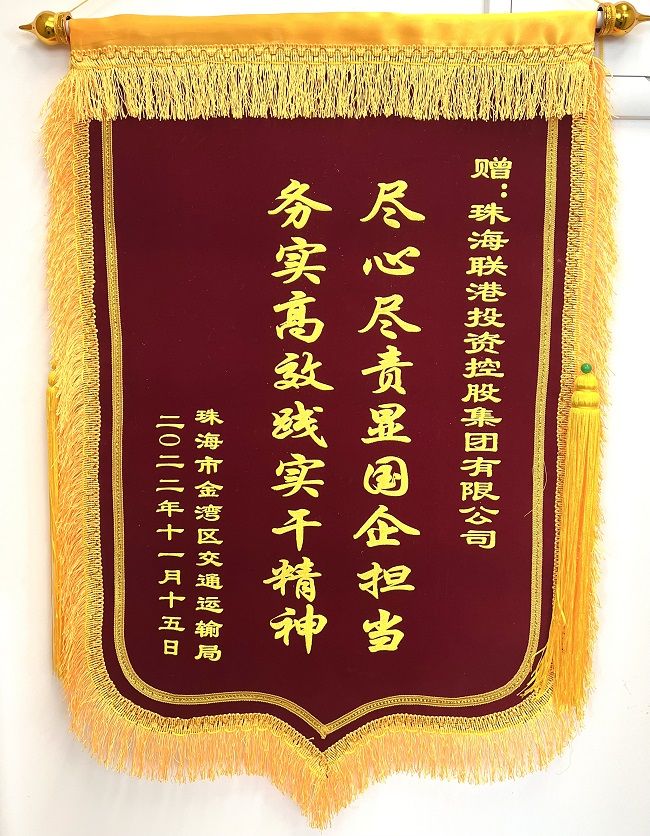 2022年11月15日上午,珠海市金灣區(qū)交通運輸局局長章芳一行領(lǐng)導(dǎo)專程將一面寫著“盡心盡責(zé)顯國企擔(dān)當(dāng),務(wù)實高效踐實干精神”的錦旗送到聯(lián)港集團,衷心感謝聯(lián)港集團在航展期間停車場保障工作中“不講條件、不講困難、不辭勞苦”,勇于擔(dān)當(dāng)、晝夜奮戰(zhàn),緊急處置P6、P8停車場各種應(yīng)急情況,積極引導(dǎo)市民有序入場、熱情地為市民們解答觀展政策,提供航展信息咨詢服務(wù),為市民提供了優(yōu)質(zhì)的觀展體驗,用責(zé)任、熱情、耐心守護“藍(lán)天盛會”,為航展增添了一抹亮麗的風(fēng)景。