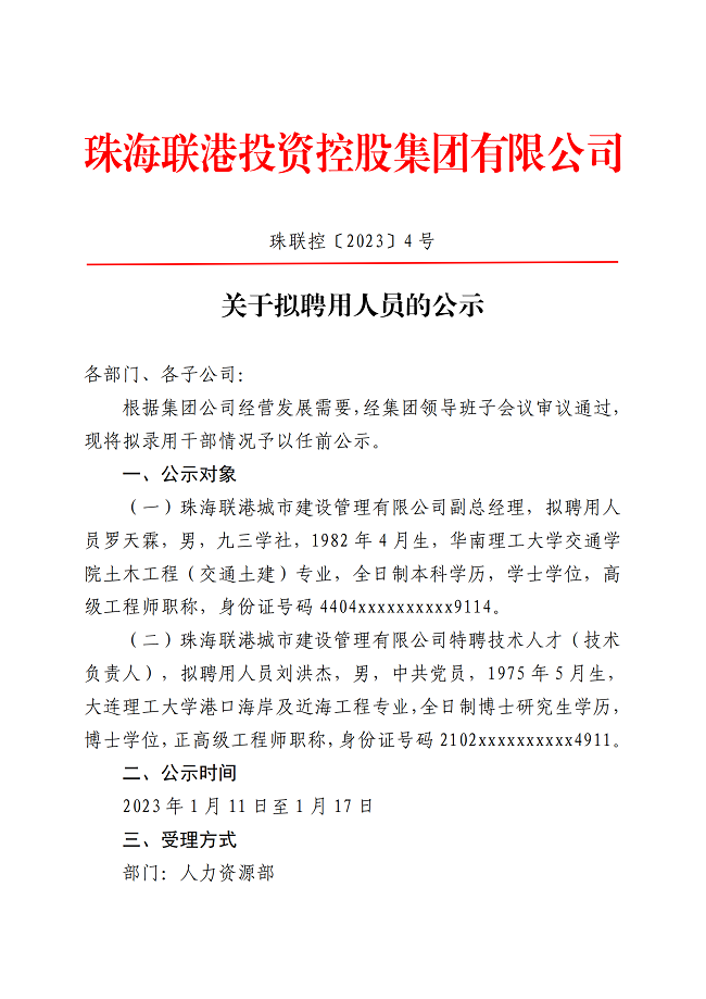 珠聯(lián)控〔2023〕4號 關(guān)于擬聘用人員的公示